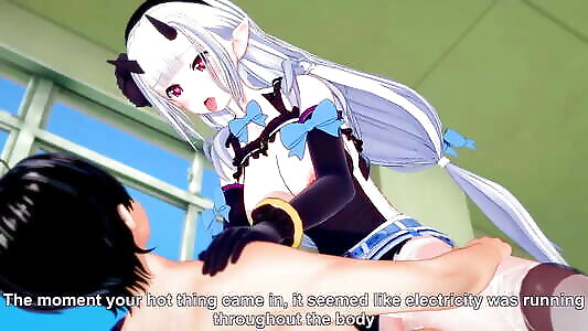 une fille démon dorée chevauche une bite sur le dessus en pov