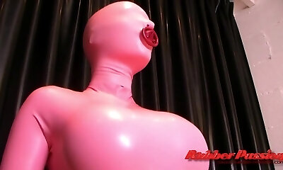 Latex bitch in super-naughty latex catsuit plays rough games