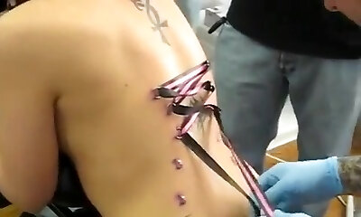 пирсинг бдсм марионетка получает соски и внешние половые губы пирсинг