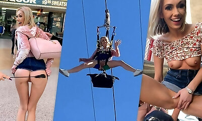 лонгпусси, на прогулку, здоровенная пробка для пизды, прозрачный топ, высокие каблуки, высокие бедра и короткая мини-юбка на публике!