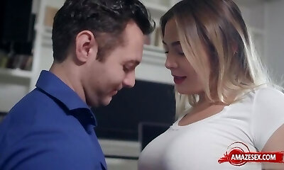 грудастая мачеха возвращается после ночной прогулки в клубе со своими друзьями, чувствуя себя очень возбужденной