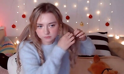 Wondrous and tender Russian blonde young camgirl posing in front of the webcam