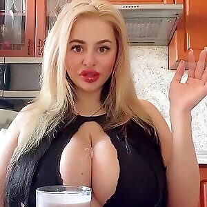 Such a sloppy one spilled yogurt on big natural tits
