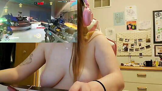 Ultra-cute gamer female playing overwatch