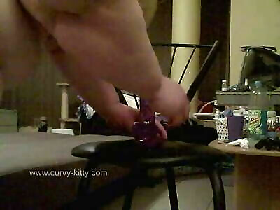 Plumpy Dame With Bubble Booty Rail On Stool Dildo! Up And Down Bounce Pretty Butt!