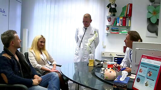 Ash-blonde woman rides knob at medical center