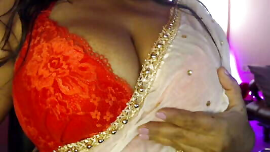 Rasily sexy bhabhi enjoys self sex by showing hot cleavage, pinching boobs and nipples and being completely nude.