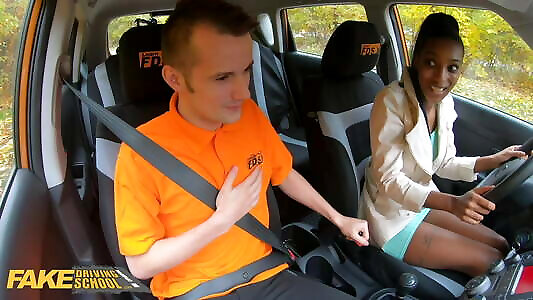 Faux Driving College Dark-hued Asia Rae Gets Stuck and Penetrated
