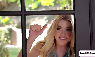 Cute towheaded teen fucks fat pink cigar while her parents are out for the day