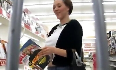 Blonde virgin takes a lusty glance at the exhibitionist's pipe