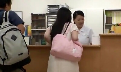 Asian Brunette nurse Shino Aoi in the doc's office in oral action uncensored.