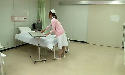 Enticing Japanese nurse Riko Tachibana provides her patient with BJ