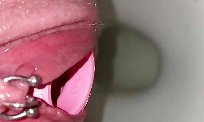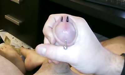 Pierced Jizz-shotgun in Cbt Bondage, Penis Plug,Electro, cum in Tube
