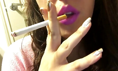 Sexy Brunette Babe Close Up Smoking Buttplug Tip 100 Cig Pastel Pink Lipstick